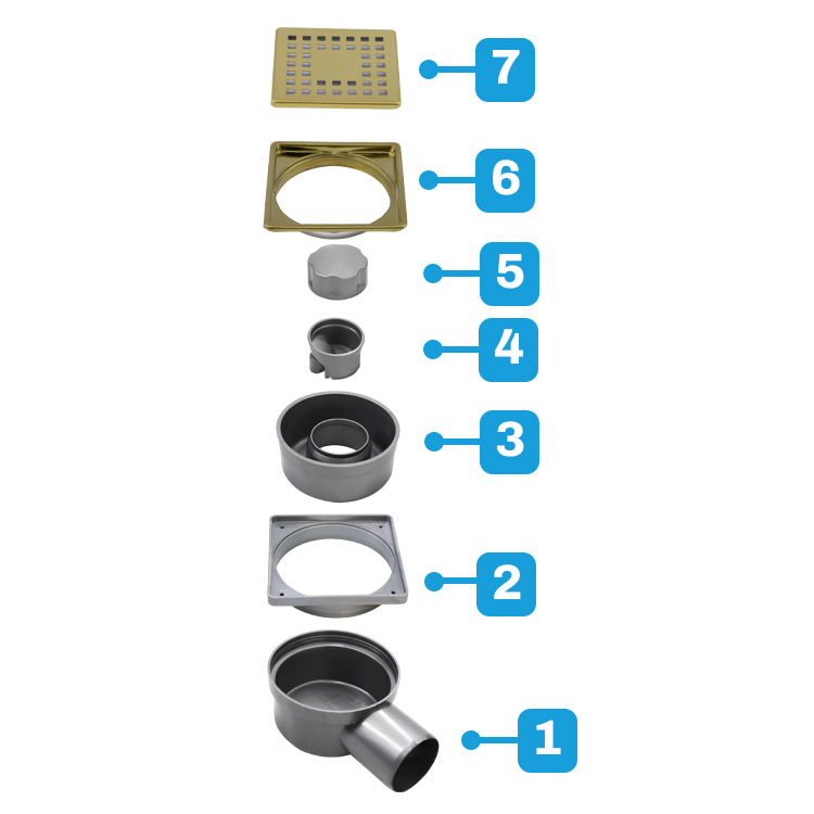 10x10 cm Gold Renk Klasik Süzgeç: Banyo Zeminlerine Lüks Dokunuş